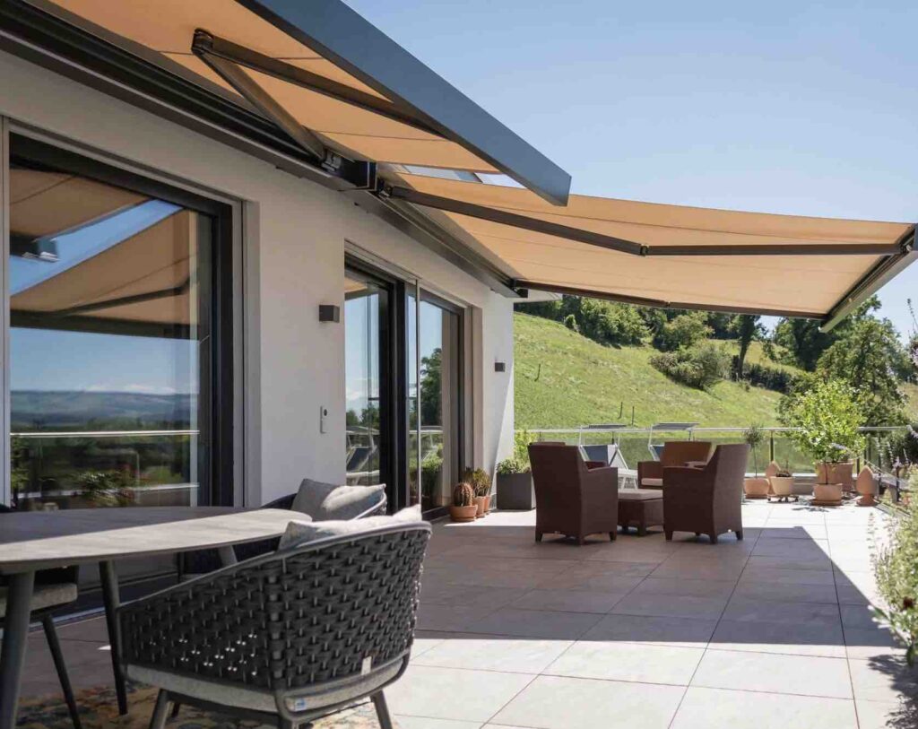 Elegancja i praktyka: Nasze markizy charakteryzują się nowoczesnym designem i są dostępne w wielu wzorach oraz kolorach. Pozwolą Ci stworzyć przytulny kącik na tarasie lub balkonie, jednocześnie będąc efektownym elementem elewacji.