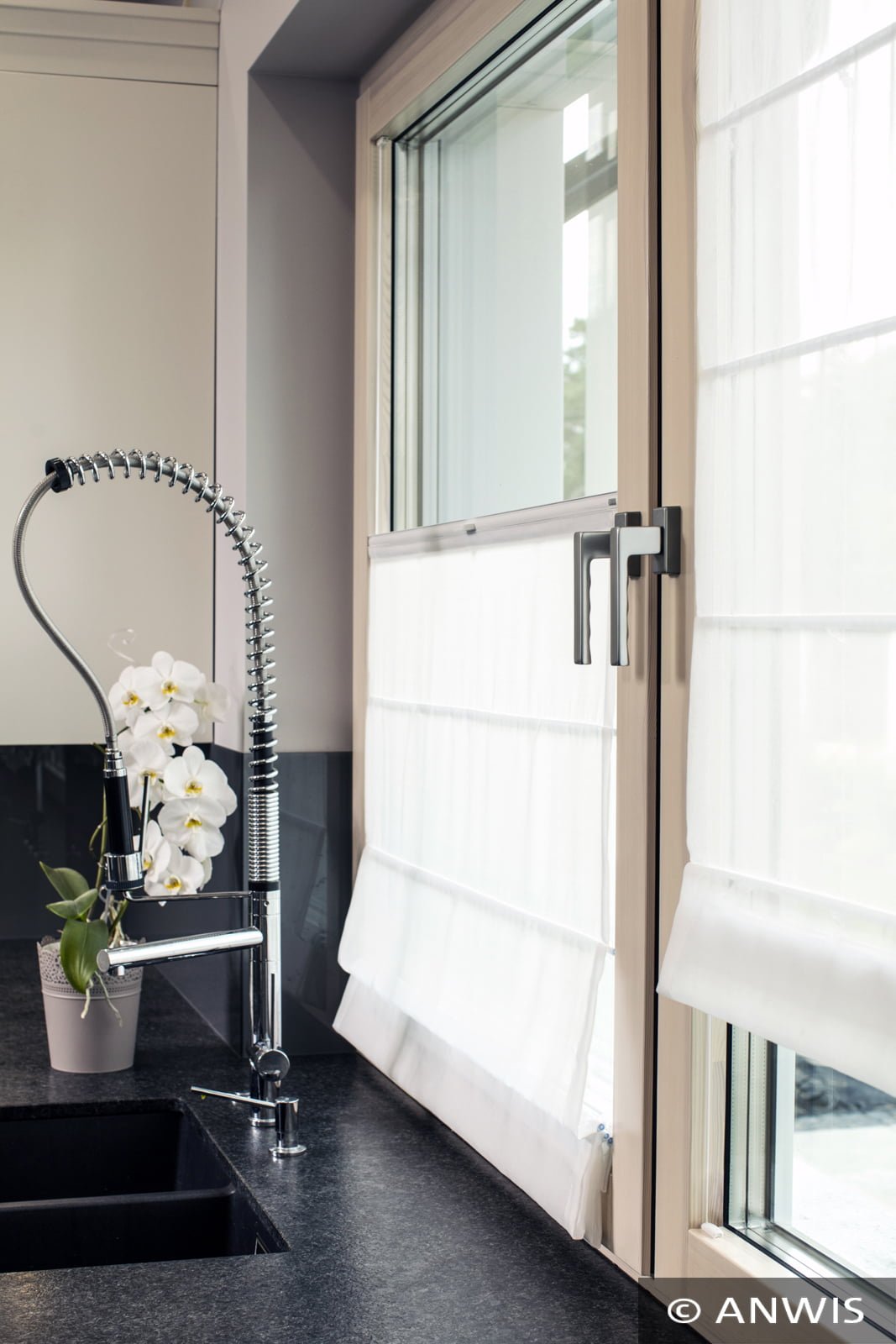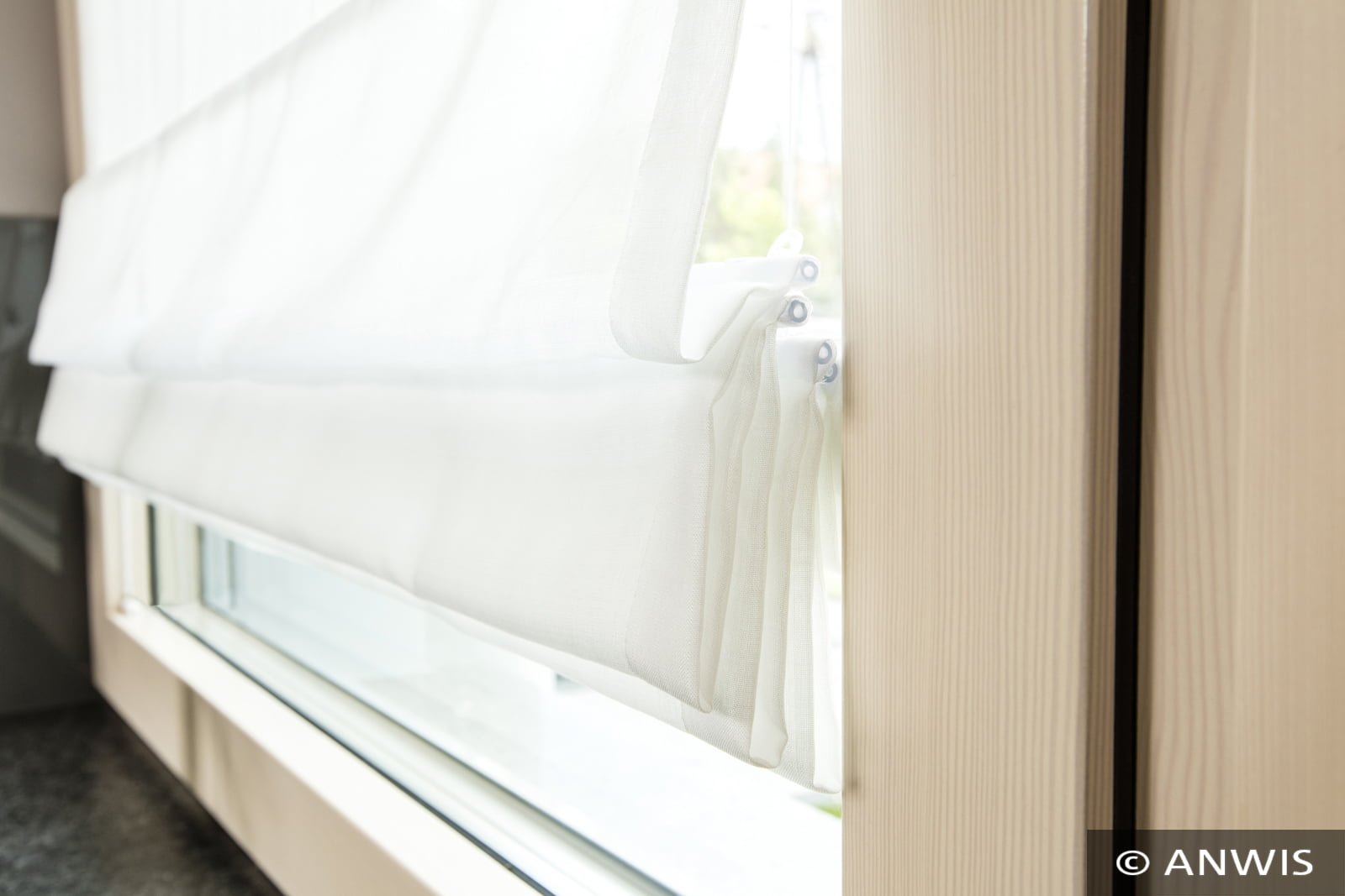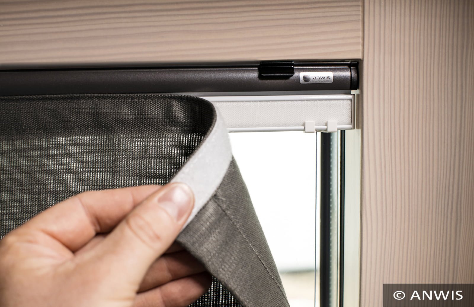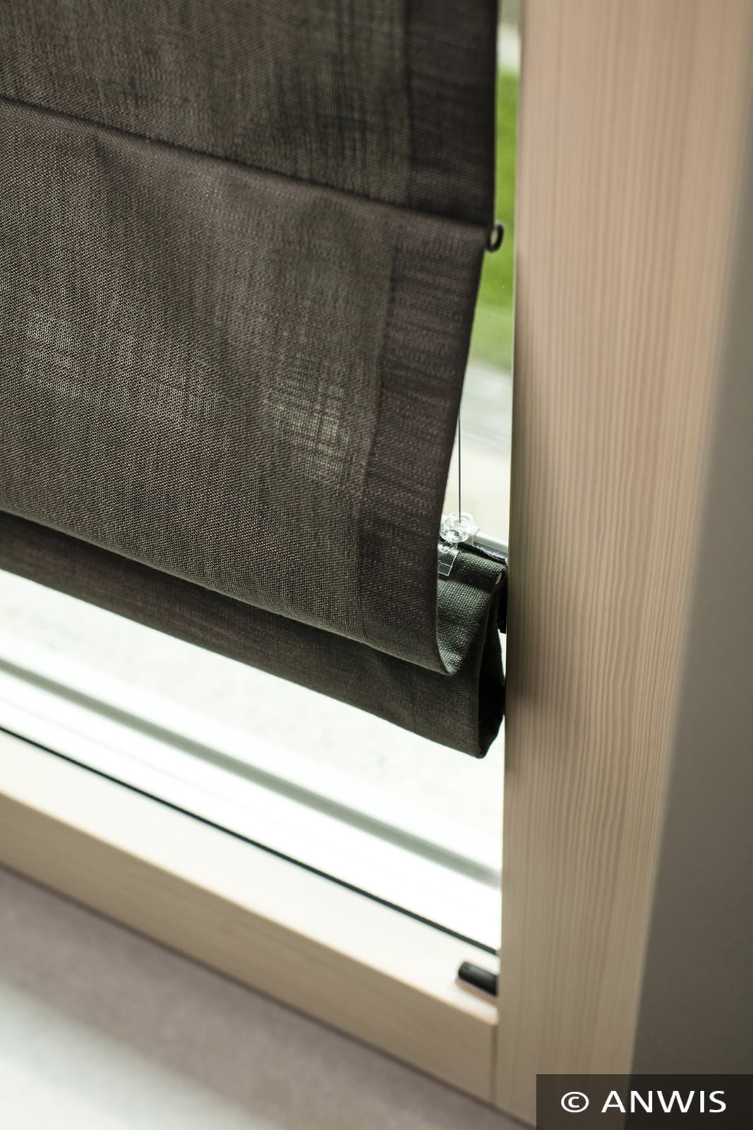 napinającym zasłonę można zatrzymać na dowolnej wysokości. Największą zaletą zasłony RVS jest montaż w świetle szyby, dzięki czemu zasłona nie utrudnia otwierania skrzydeł okiennych.